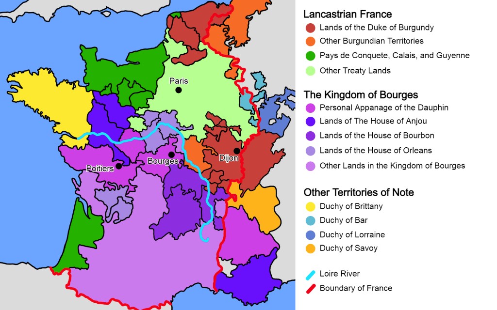 The King is dead, long live the King…whoever that might be. After the deaths of Henry V of England and Charles VI of France, the Duke of Bedford took the lead in continuing the Lancastrian conquest of France. Bedford’s opponent, Charles VII, led a rump state in the south, known derisively as the Kingdom of Bourges. Philip the Good remained with the English after the death of Henry V, but his commitment to the cause was flagging, something noticed by both Bedford and Bourges.