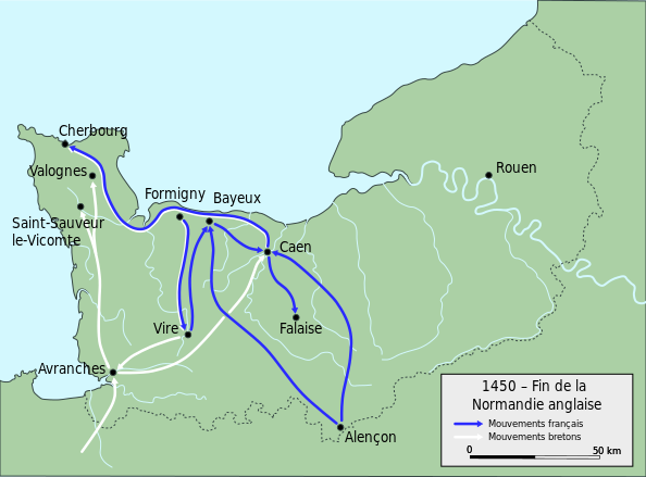Notable Events/Developments: Seizure of Fougeres, Breakdown of the Truce of Tours, Norman Campaign (1449-1450), Battle of Formigny, Gascon Campaign (1450-1451), Battle of Castillon